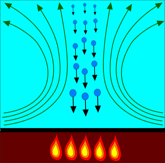 However objects of an intermediate size would experience a downward force (due to gravity) and an upward force (due to convection) that were in balance. Such objects would neither rise nor fall. Instead they would remain balanced some distance above the bottom of the system.